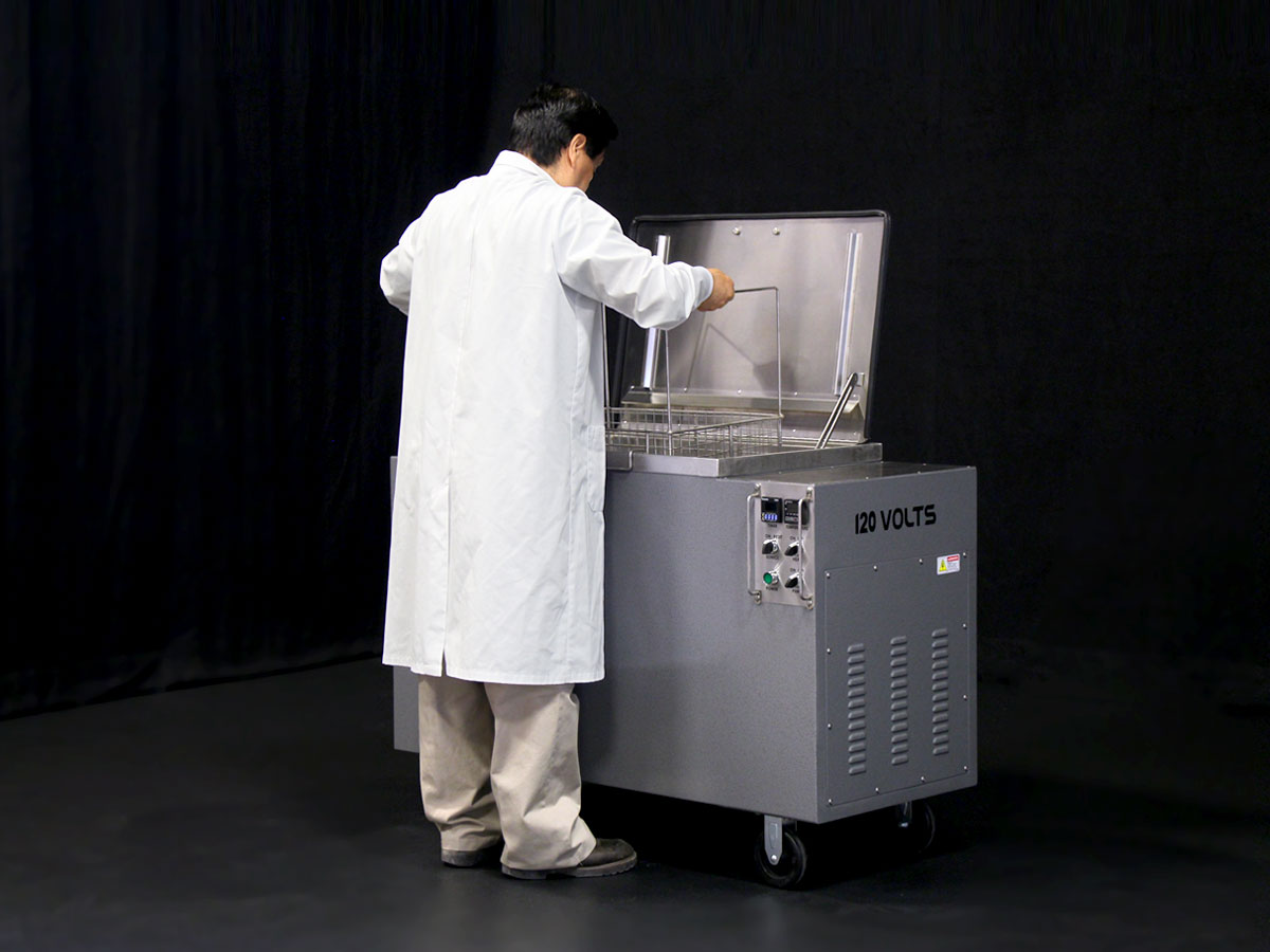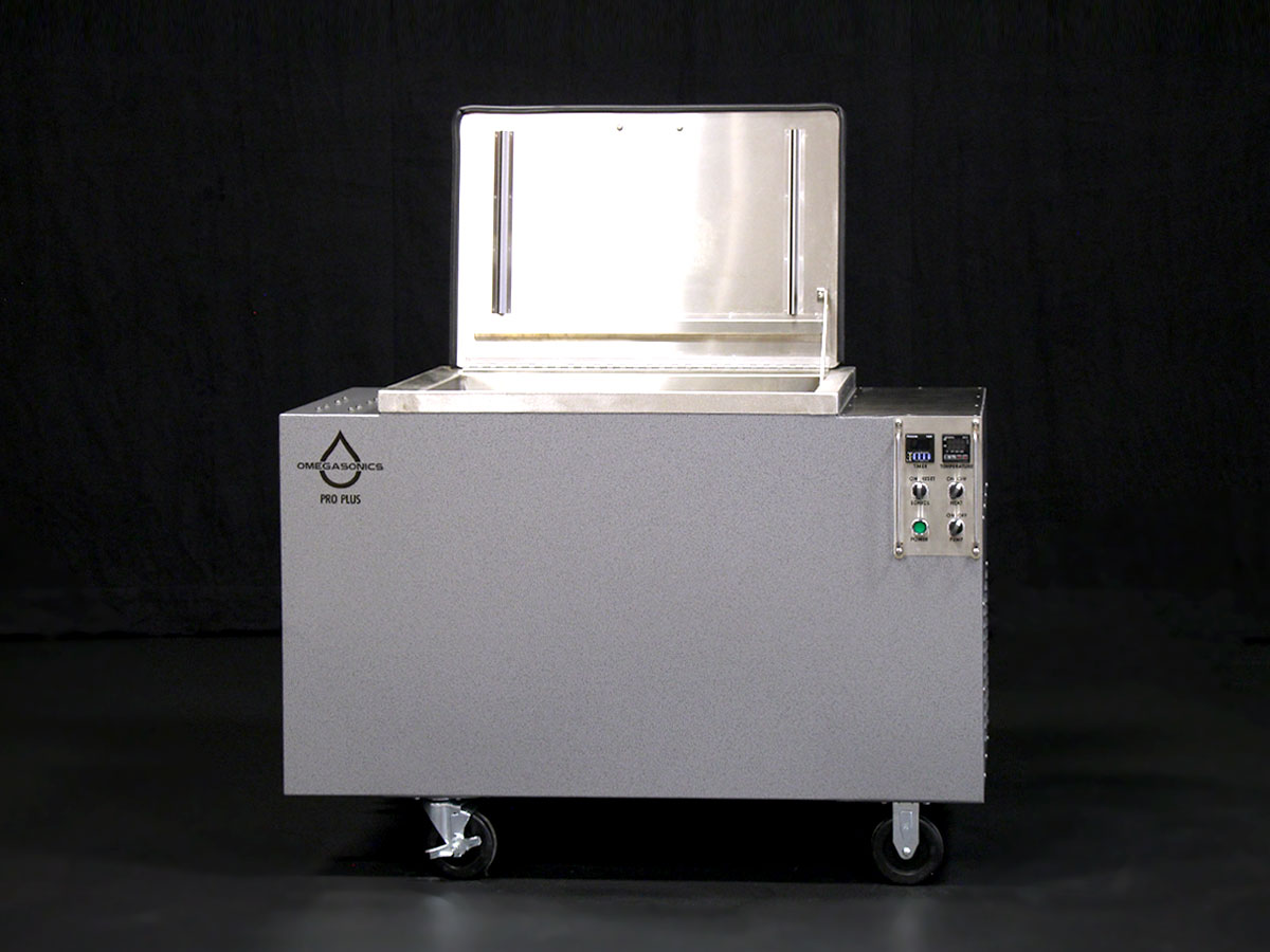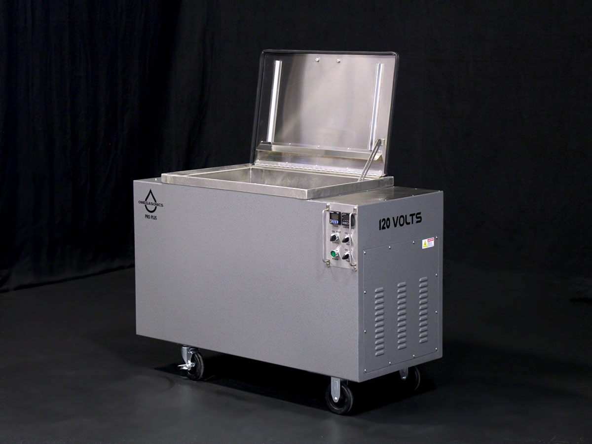 The 33-gallon Omega Pro Plus industrial ultrasonic cleaner has a slightly larger tank capacity than the Omega Pro, but twice the ultrasonic cleaning action, making it ideal for higher volume industrial clients. Utilizing all the same design conveniences, the 24” x 18” tank opening gives the operator that extra flexibility needed for larger parts. The 120-volt design means the unit can literally go anywhere in your facility, making it ideal for cell manufacturing.