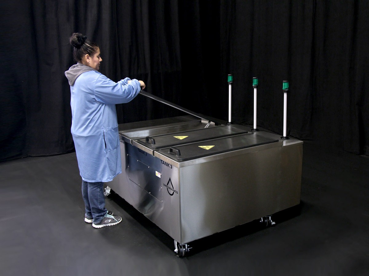 This three stage medical grade washer features an ultrasonic wash tank, a secondary ultrasonic rinse tank and a third stage heated rinse tank. The X3 model is used to clean medical devices and implants which require the utmost in cleanliness.