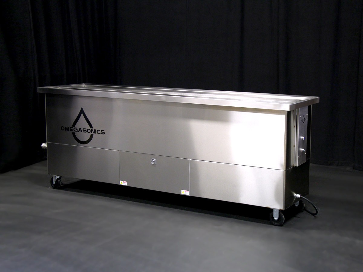 Our base model Profile 7200 ultrasonic blind cleaner is available in two sizes, 75” or 100” tank dimensions. This dual tank blind cleaner uses an over-the-side, analog controlled heating element and the ultrasound is manually controlled with an On/Off illuminated push button.