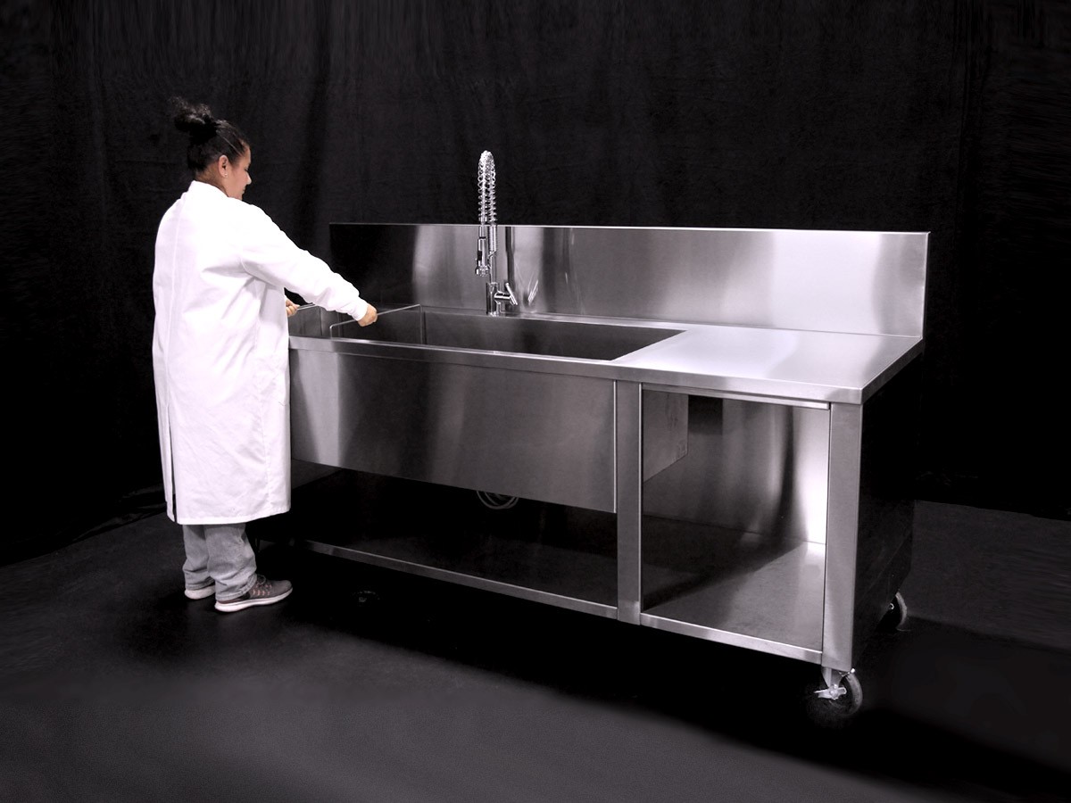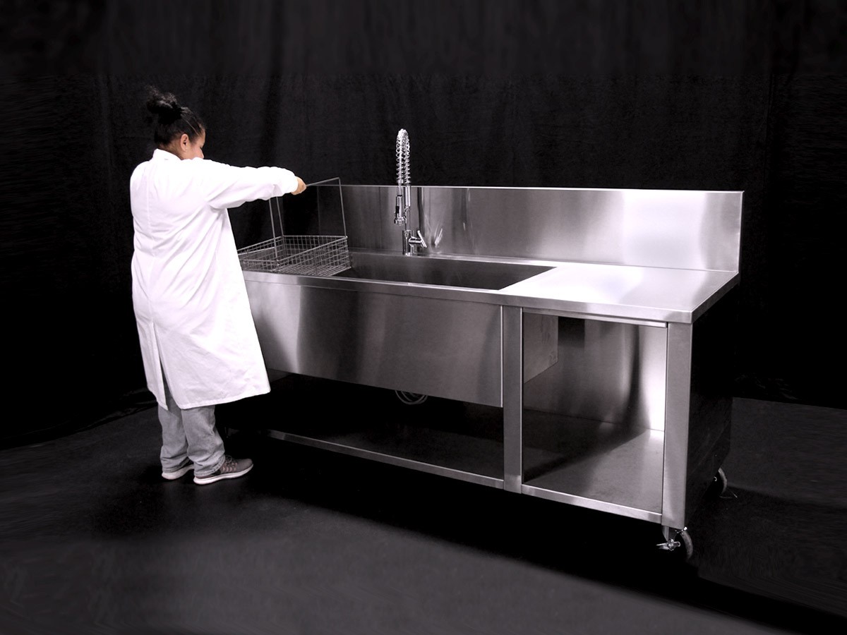 The Omegasonics Rinse Detail sink is used to rinse off remaining soot and soap residue from an assortment of contents once the items have been processed through the ultrasonic cleaning unit.