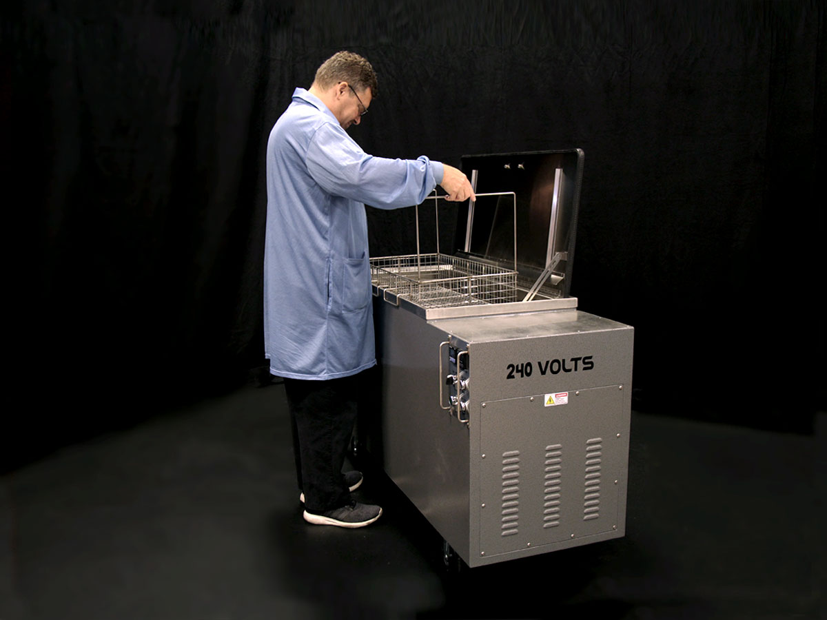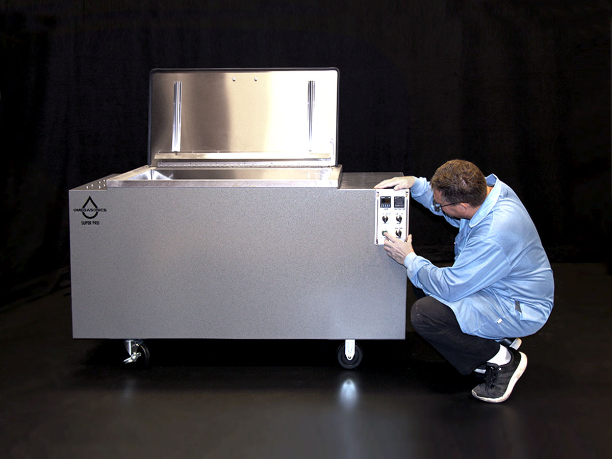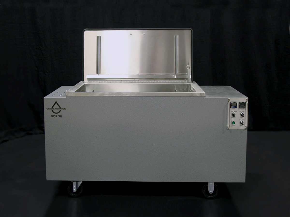 The Omega Super Pro is a powerful industrial ultrasonic cleaner with a 45-gallon ultrasonic cleaning tank and some of the highest ultrasonic cleaning power-to-volume ratios in the industry. This unit is a real workhorse and can power through much of your ultrasonic cleaning needs. Digital ultrasonic control, digital temperature control and filtration are all standards on this unit. Clients in the petrochemical, engine building, mining, oil and gas drilling industries use this ultrasonic parts washer to remove, grease, dirt, carbon and more during their maintenance protocols.