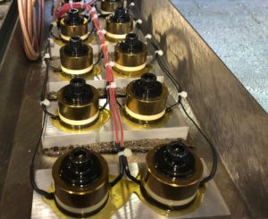 Magnetostrictive transducers are remarkably durable, though its overall competitive advantages are quickly decreasing as the technology around piezoelectric transducers evolves and improves. The use of iron-based metals means there is no degradation over time; metals like nickel maintain their magnetostrictive properties on a constant level for the lifetime of the ultrasonic cleaning unit. The metal stack is welded directly to the unit’s diaphragm ensuring the bond will never loosen. Also, diaphragms used with this type of transducer are usually 5 mm thick or more, eliminating the risk of cavitation erosion wear-through.