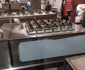 If the job to be done is cleaning oils, water-based coolants and light dirt, either a system with bottom-mount transducers or bottom-mount direct bond transducers will be effective because oil floats and there isn’t much dirt to settle to the tank bottom. However, direct bond transducers are fixed to the tank bottom so when you look at the inside bottom of the tank, it is flat.