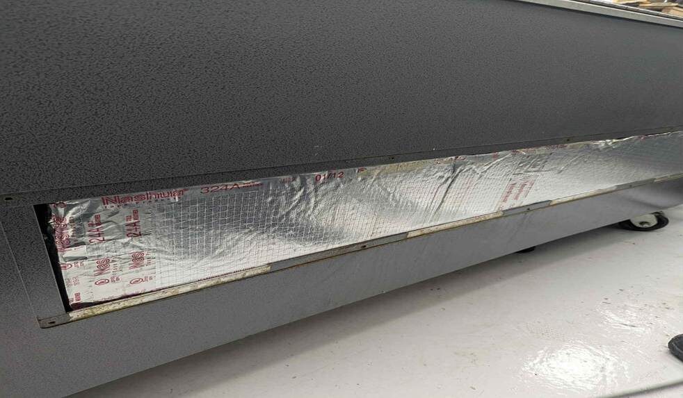 Locate the side access panel on the unit. Remove the screws and carefully lift off the cover. You’ll see insulation (like the Nashua 324A foil-faced insulation) covering the internal components.