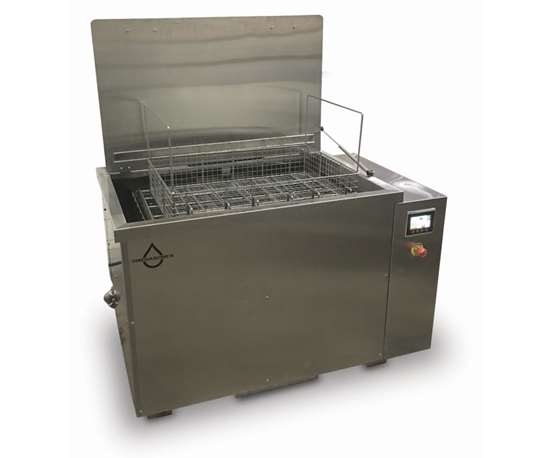 Omegasonics’ PowerLift 4560 is engineered to clean heavy parts by enabling the operator to lower and lift parts out of the tank with an assisted pneumatic lift.