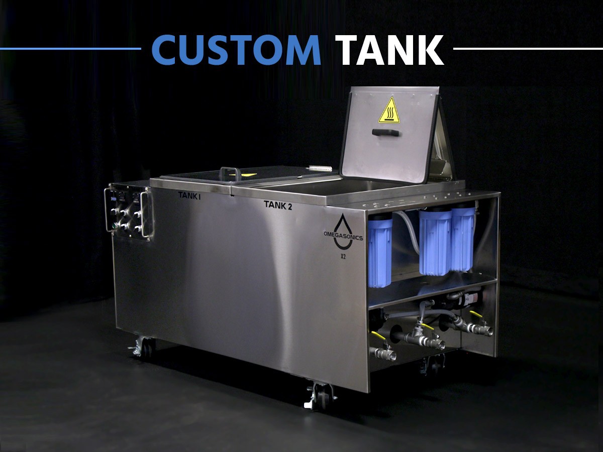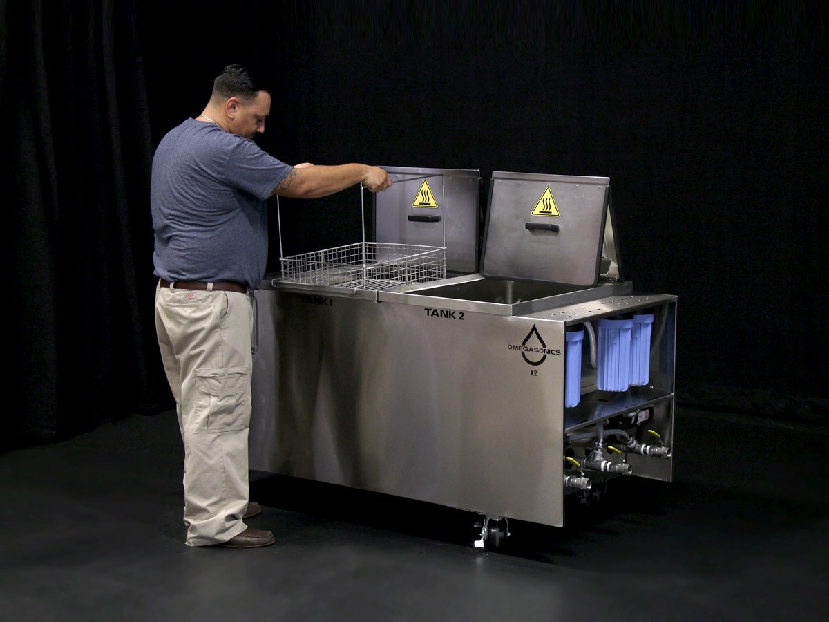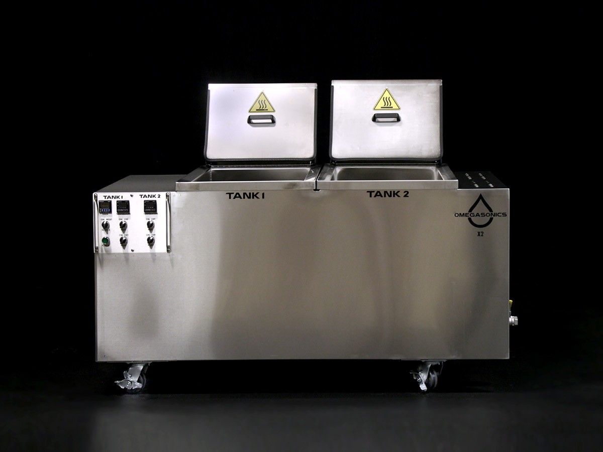 Dual stage ultrasonic cleaning system with heated non-ultrasonic rinse is used to clean surgical instruments in an offshore military hospital operating room. Utilizing the standard design features of our Pro Plus models, this system required special voltage requirements using only 120 Volts supply voltage accomplished by dual plugs and interlocking heat and sound to stay within electrical supply limits.