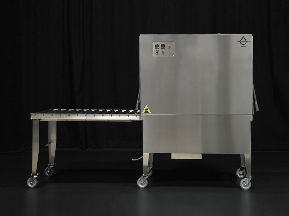 The Omega 6900TD tunnel dryer is designed to speed up your contents cleaning processing. Since the unit has entry and exit guillotine doors and a high volume dryer, the concentrated dry air moves baskets with contents through at a rapid pace. The dryer processes a basket of contents in six minutes or less, so your staff isn’t waiting for items to dry before re-packing.